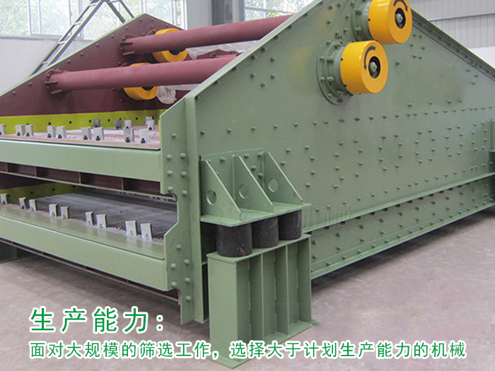 面對大規模的篩選工作,一般選擇大于計劃生產能力的機械,使設備有足夠的動力,不會出現過載運行,設備壽命也不會降低。 看來這種損失實際上是長期使用的成本效益。
