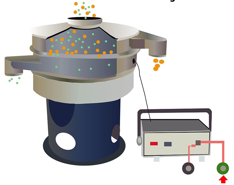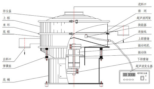 流通式超聲波篩工作時(shí),超聲波換能器將高頻電能轉(zhuǎn)化為高頻機(jī)械振動(dòng)并傳遞至篩網(wǎng),使篩網(wǎng)產(chǎn)生3.6萬次 / 秒的高頻微幅振動(dòng),帶篩分物料從上方進(jìn)料口進(jìn)入篩機(jī)后,在高頻振動(dòng)力的作用下,物料快速向四周散開的同時(shí),還能有效破除物料顆粒間的粘附、團(tuán)聚現(xiàn)象,防止顆粒堵塞篩孔,合格物料通過篩網(wǎng)由下出料口排出,不合格的大顆粒物料則沿篩面移動(dòng)至排渣口排出。
